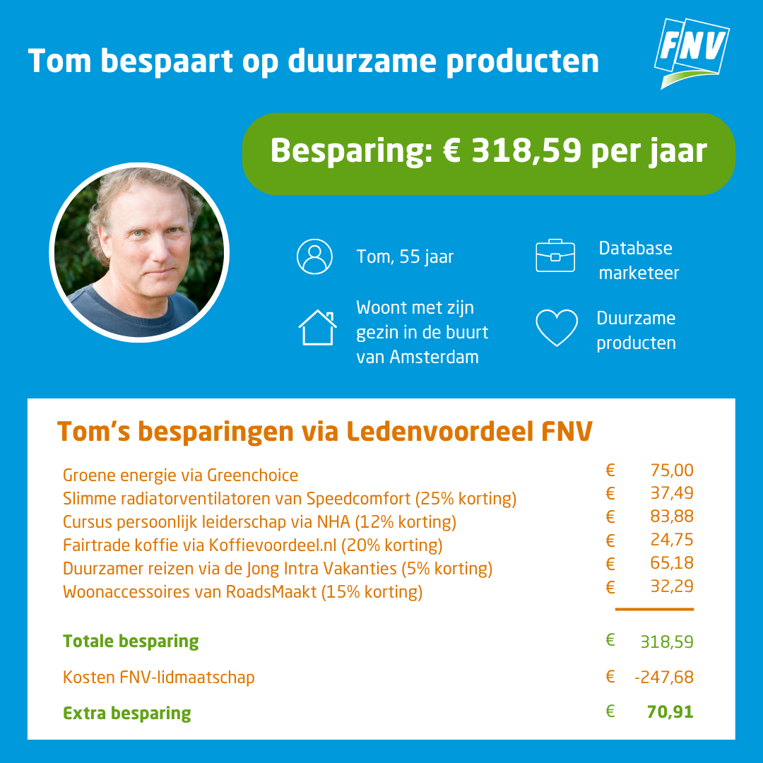 - Het voordeel is beschikbaar voor FNV-leden. Als je lidmaatschap eindigt, eindigt ook je toegang tot dit voordeel. Er kan een check op actief lidmaatschap worden uitgevoerd.