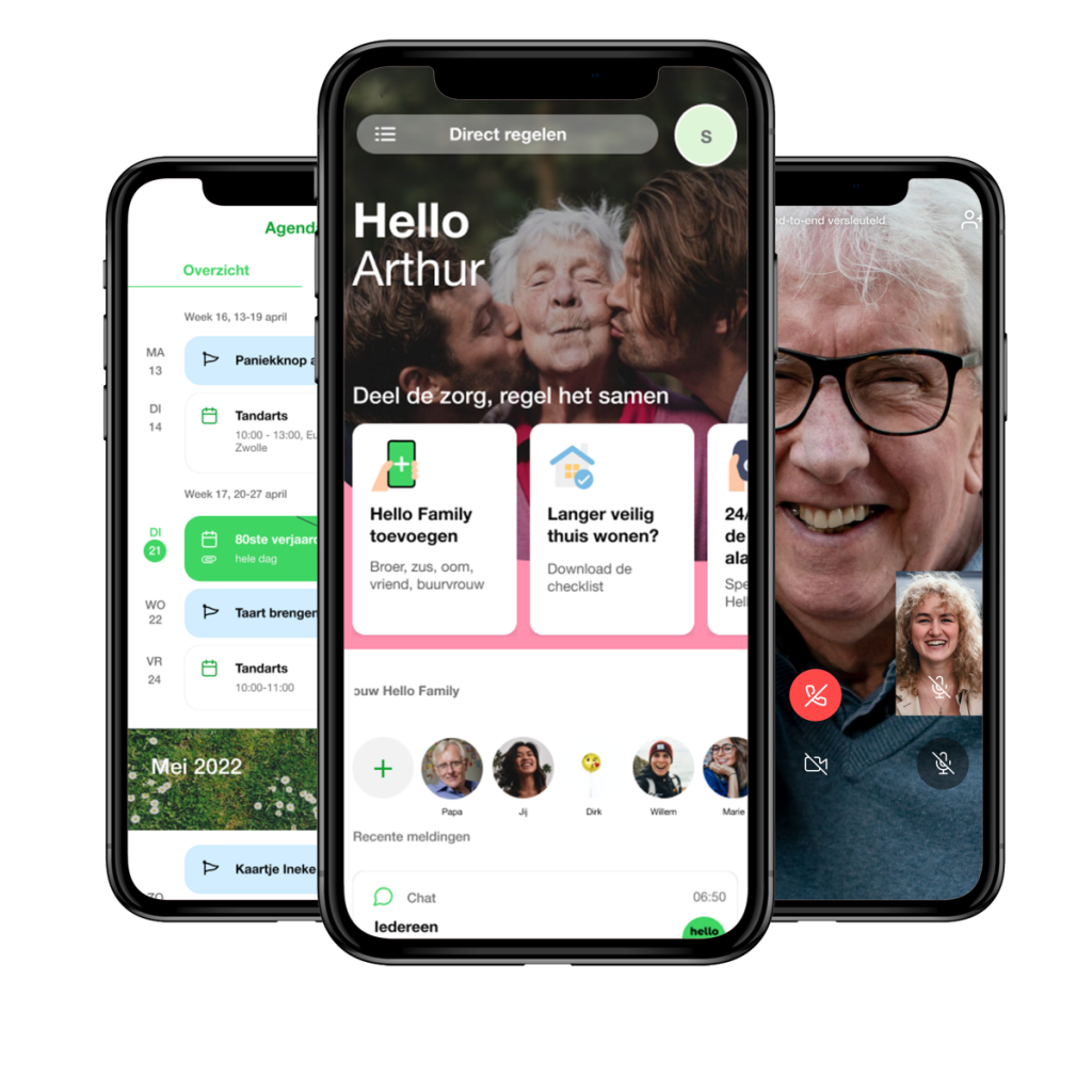 Met de deel-de-zorg app van Hello 24/7 deel je alle zorg die tussendoor komt: van wie-gaat-wanneer-langs, tot snel een gezonde maaltijd of zelfs op afstand een oogje in het zeil houden. Zodat niet alles op jouw schouders terecht komt.